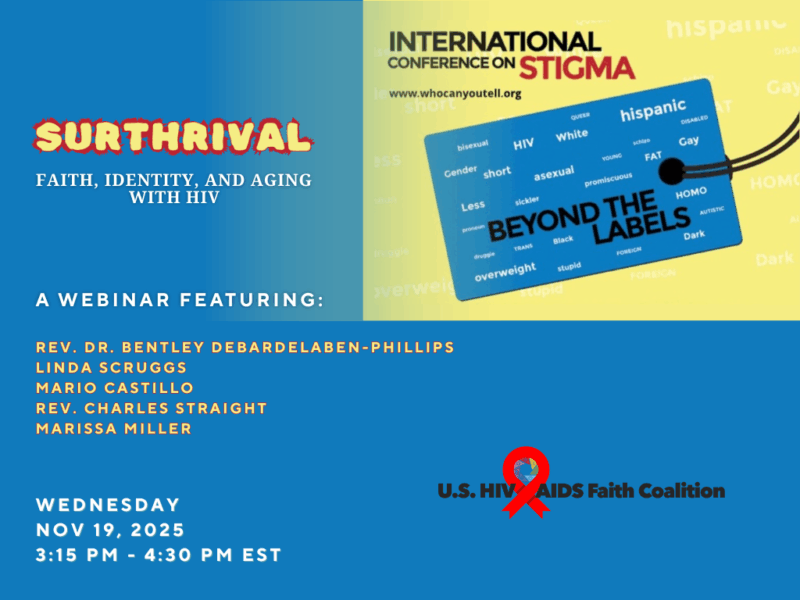 SurThrival: Faith, Identity, and Aging with HIV is a virtual panel discussion presented by the U.S. HIV & AIDS Faith Coalition during the International Conference on Stigma. This dynamic conversation brings together faith leaders, long-term survivors, and advocates to explore what it means to live—and thrive—at the intersection of faith, identity, and aging with HIV.